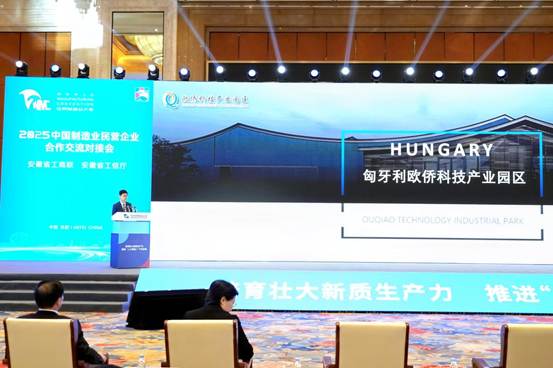 在近日举办的2025世界制造业大会上,匈牙利欧侨科技产业园区作为安徽企业进军欧洲市场的重要平台备受关注。9月20日下午在“2025世界制造业大会中国制造业民营企业合作交流对接会”上欧侨实业总经理詹敬博作为海外园区代表,向参会嘉宾们介绍了匈牙利欧侨科技产业园区的建设发展情况。